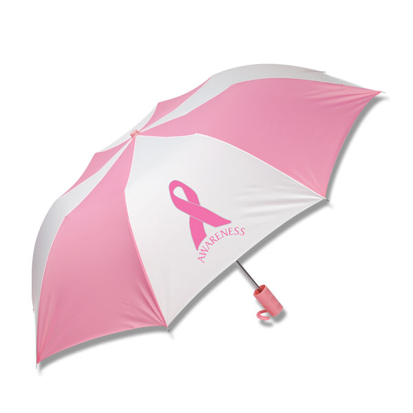 “A beautifully constructed umbrella is appreciated rain or shine! Recipients will know you care when you pick gifts that show you’re there! Umbrella comes in clear vinyl sleeve. Awareness Pink Ribbon Design.”