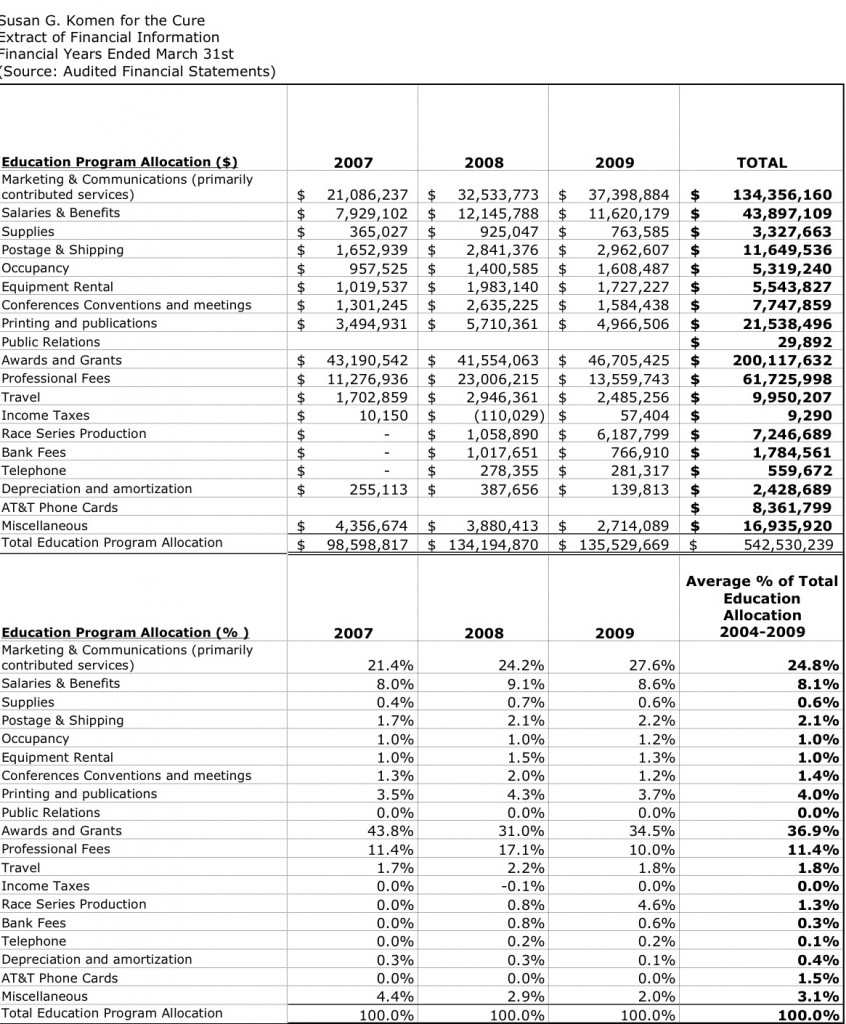Relevant to its Education program, Komen’s 2009 Annual Report states: