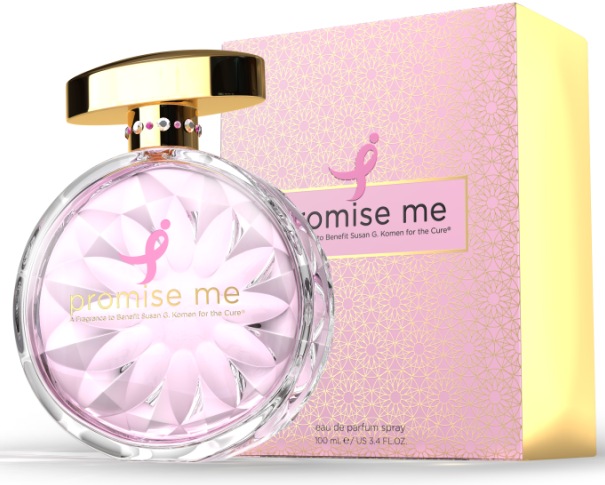 Featuring the eleven fragrance notes used in Susan G. Komen for the Cure®’s signature formulation, the creators of Promise Me then Komenized the scent by assigning special meaning to each. Pink peony signifies “femininity, tenderness and passion” while providing a “special message of hope.” Orchids represent “love, beauty, and strength.” Musk gives a “warm, sensual finish.”